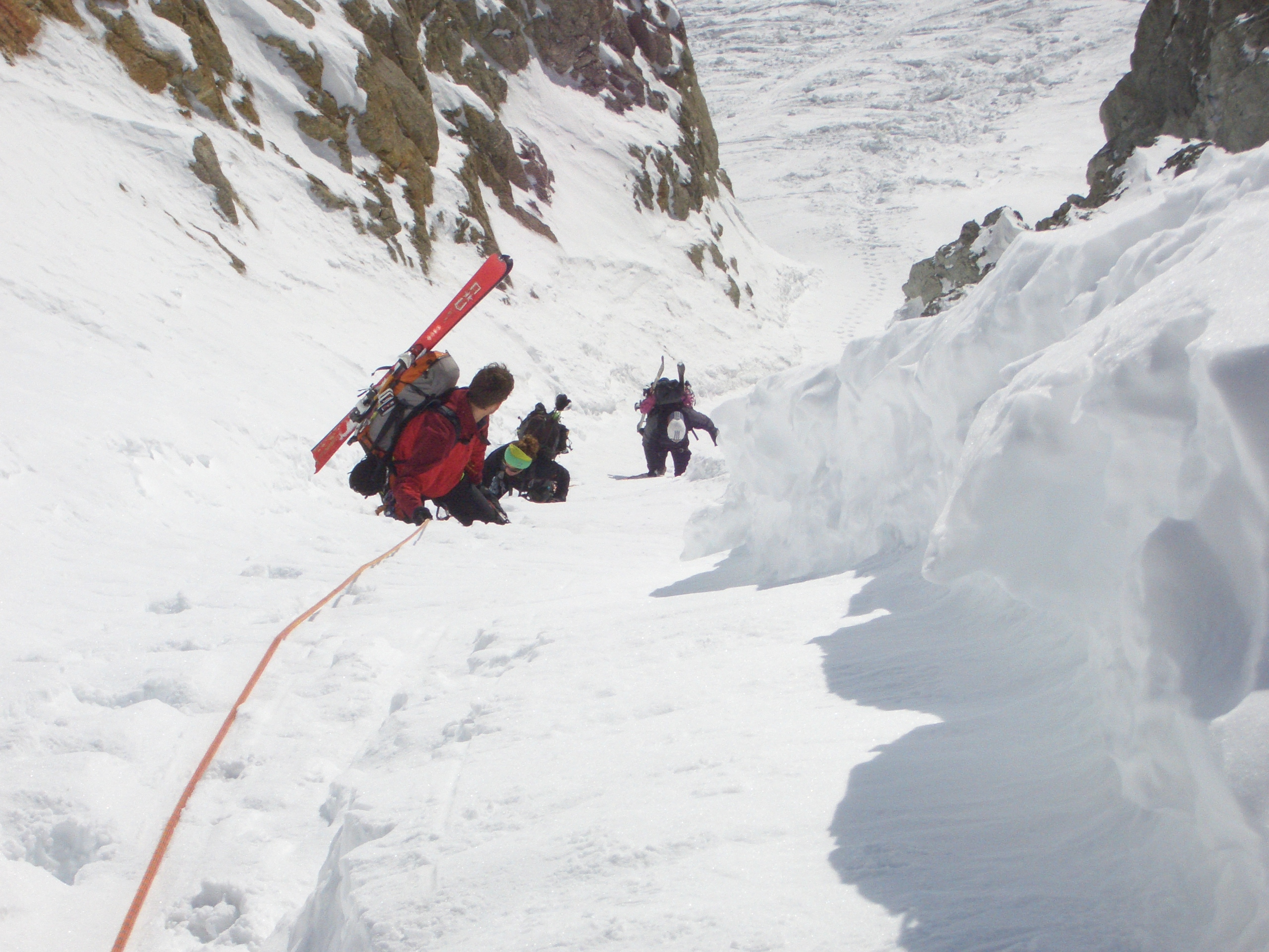 eine traumhafte tour, welche aber adäquate akklimatisation (ich war zuvor eine woche in den hohen tauern), sichere skitechnik mit abfahren am seil, und entsprechender abenteuerlust voraussetzt. abseil-, eiskletter-, und steile einfahrten in rinnen gehörten ebenso zum angebot.