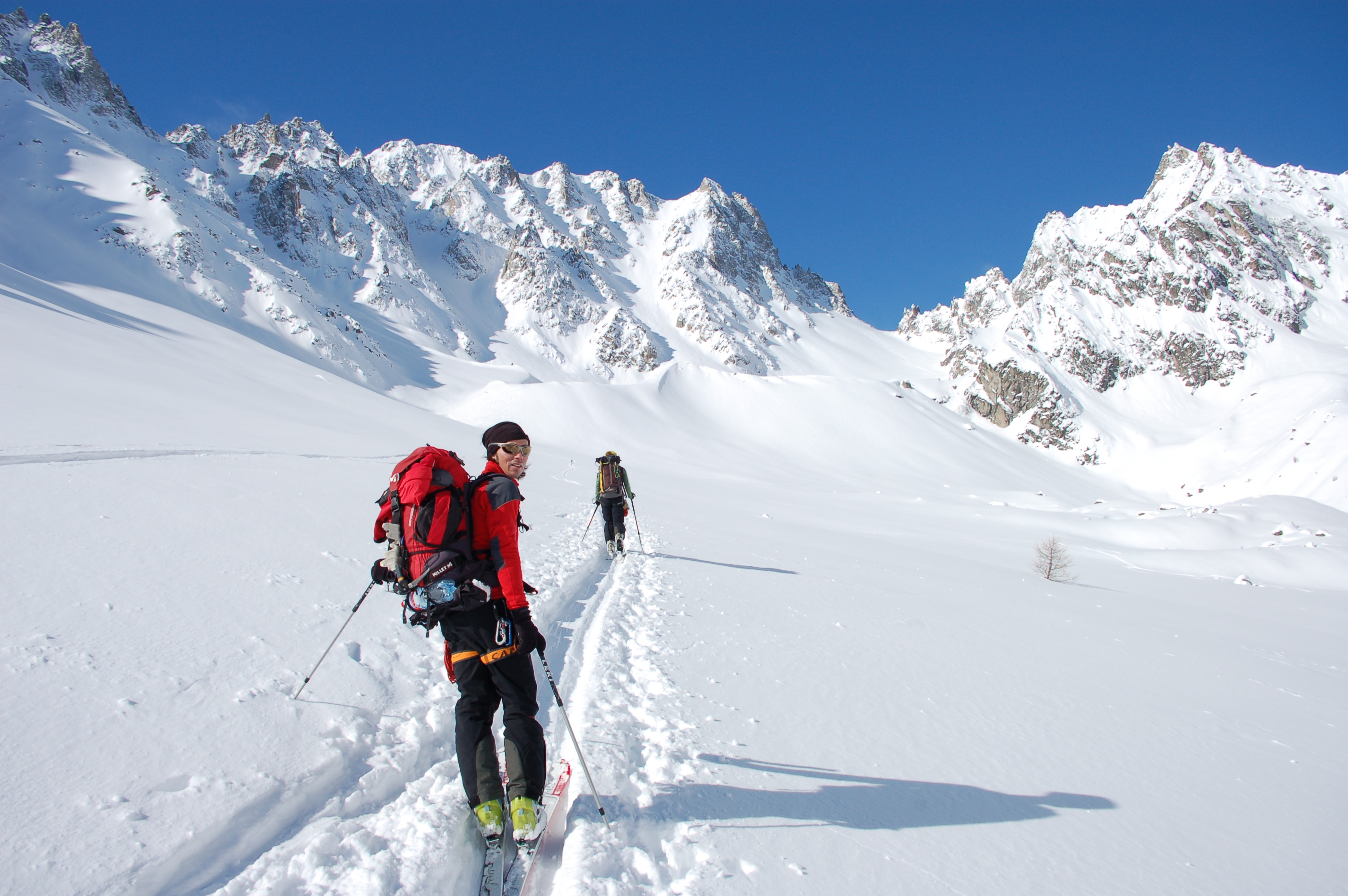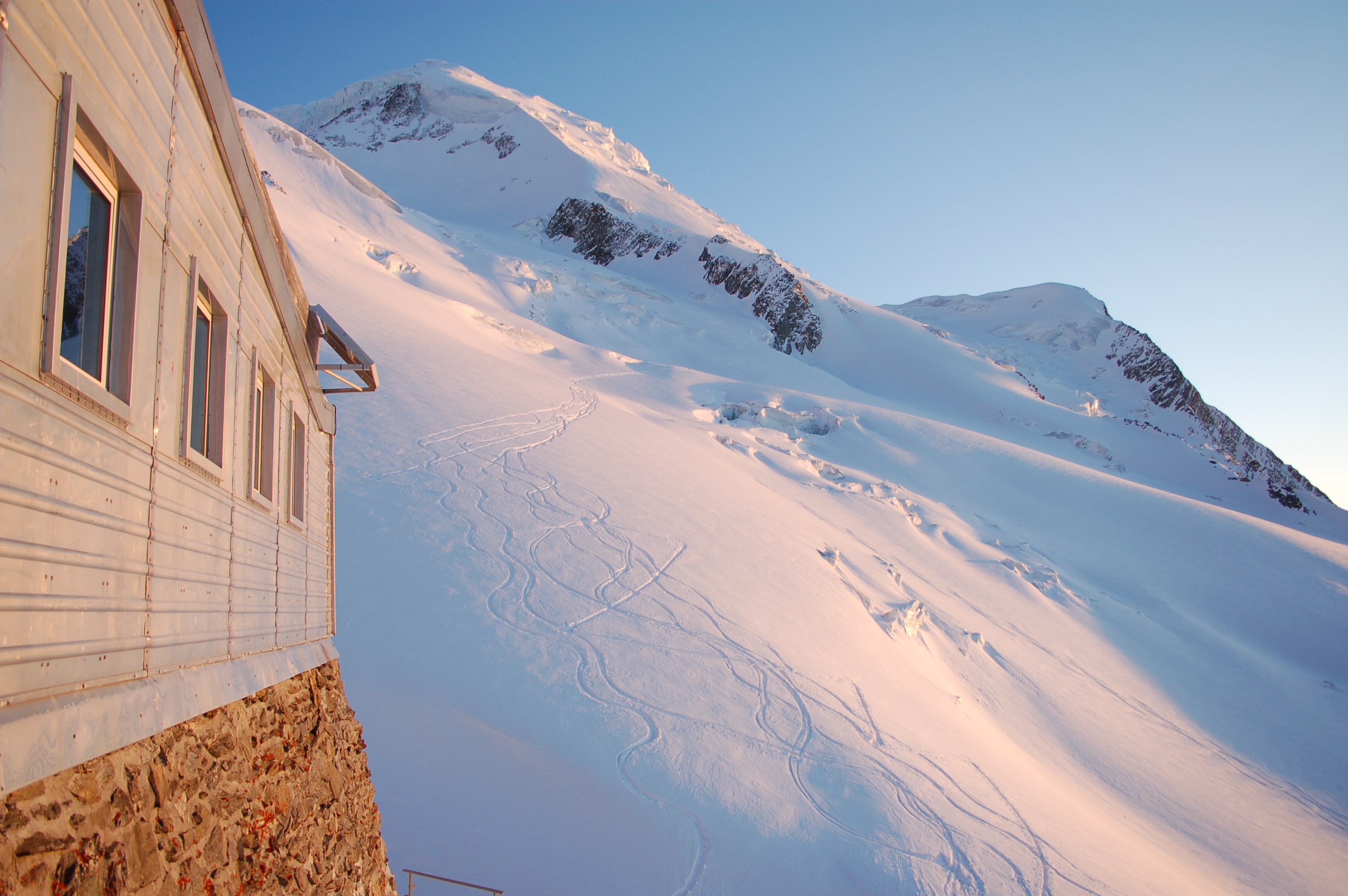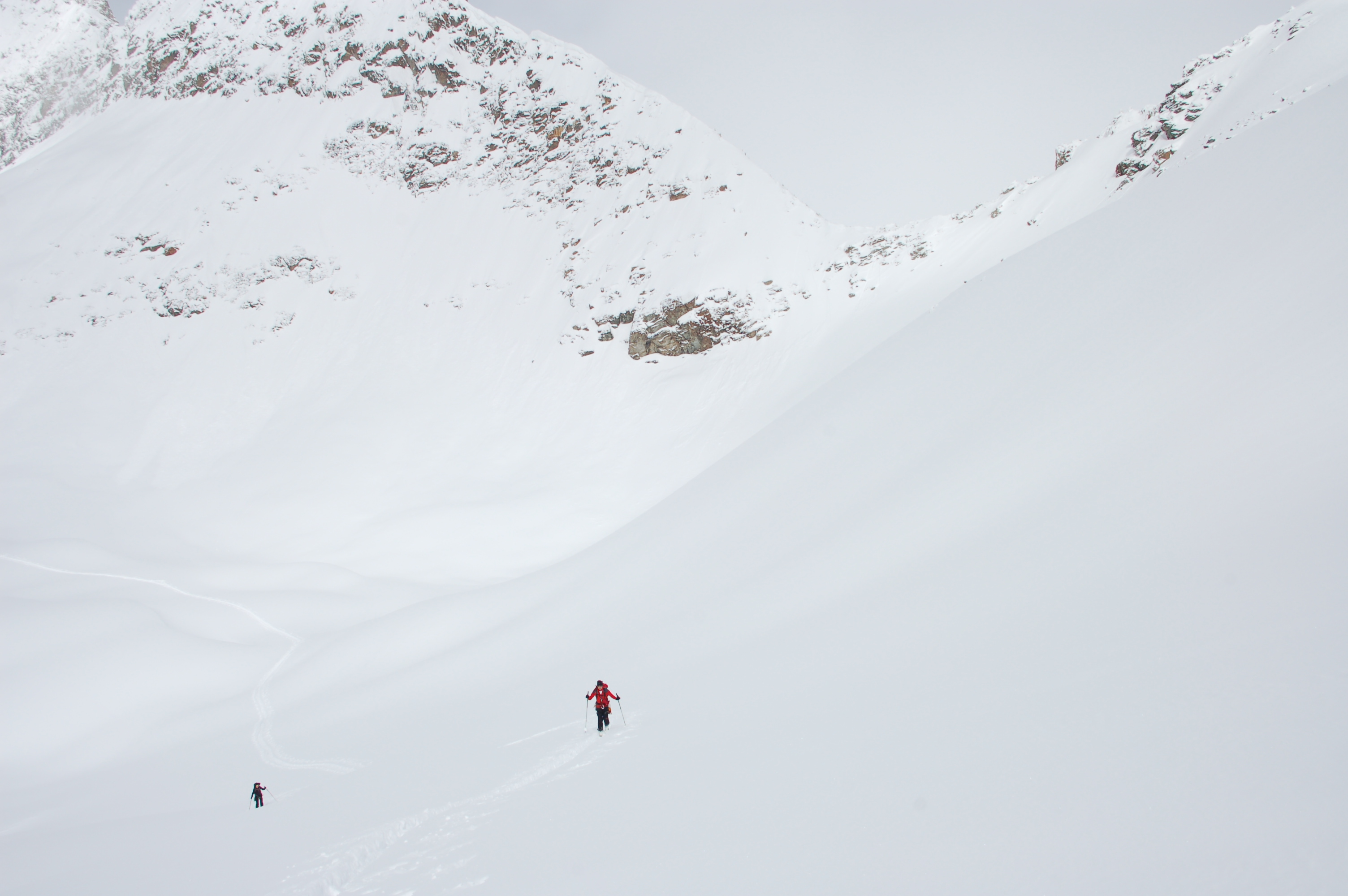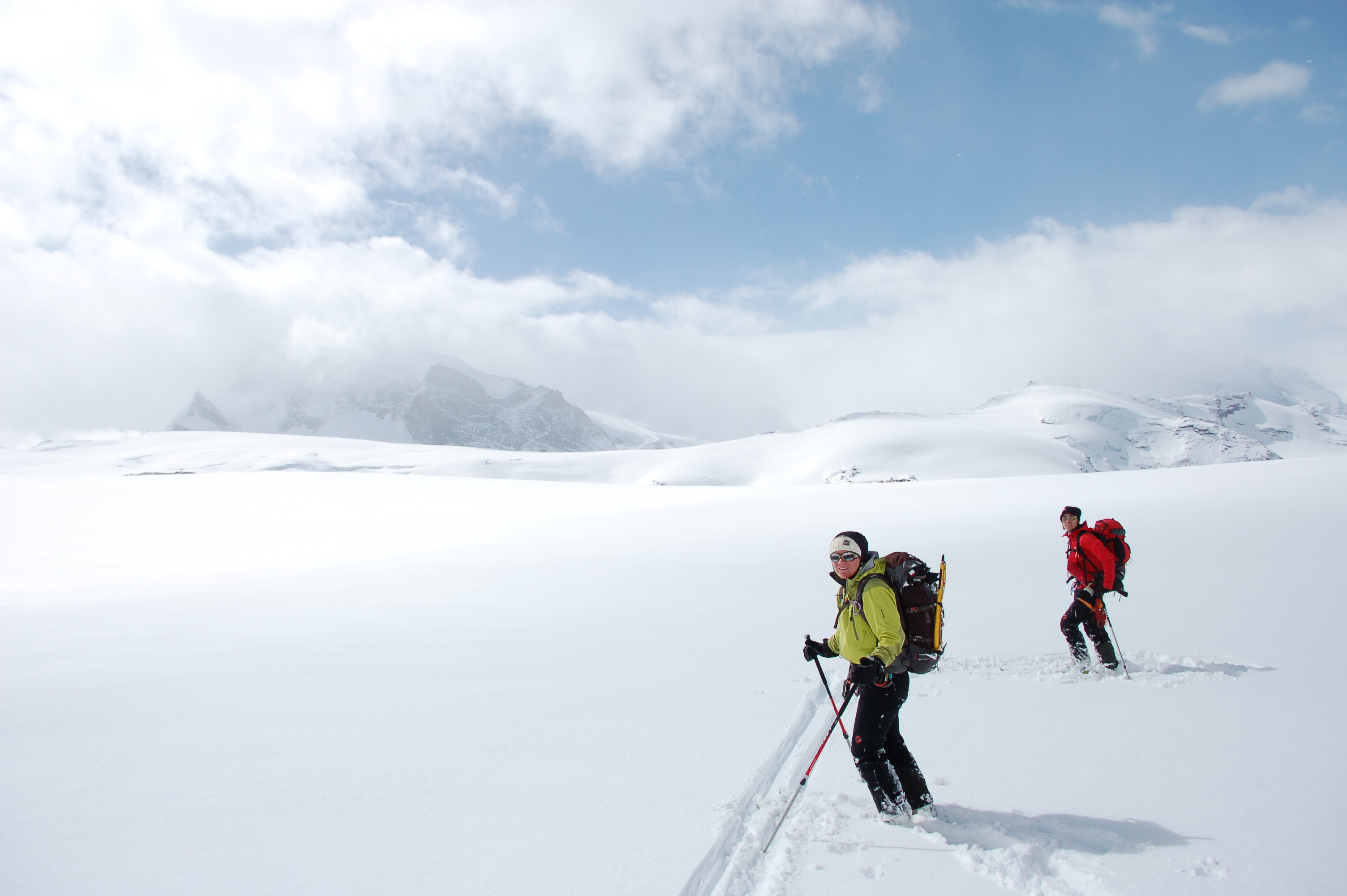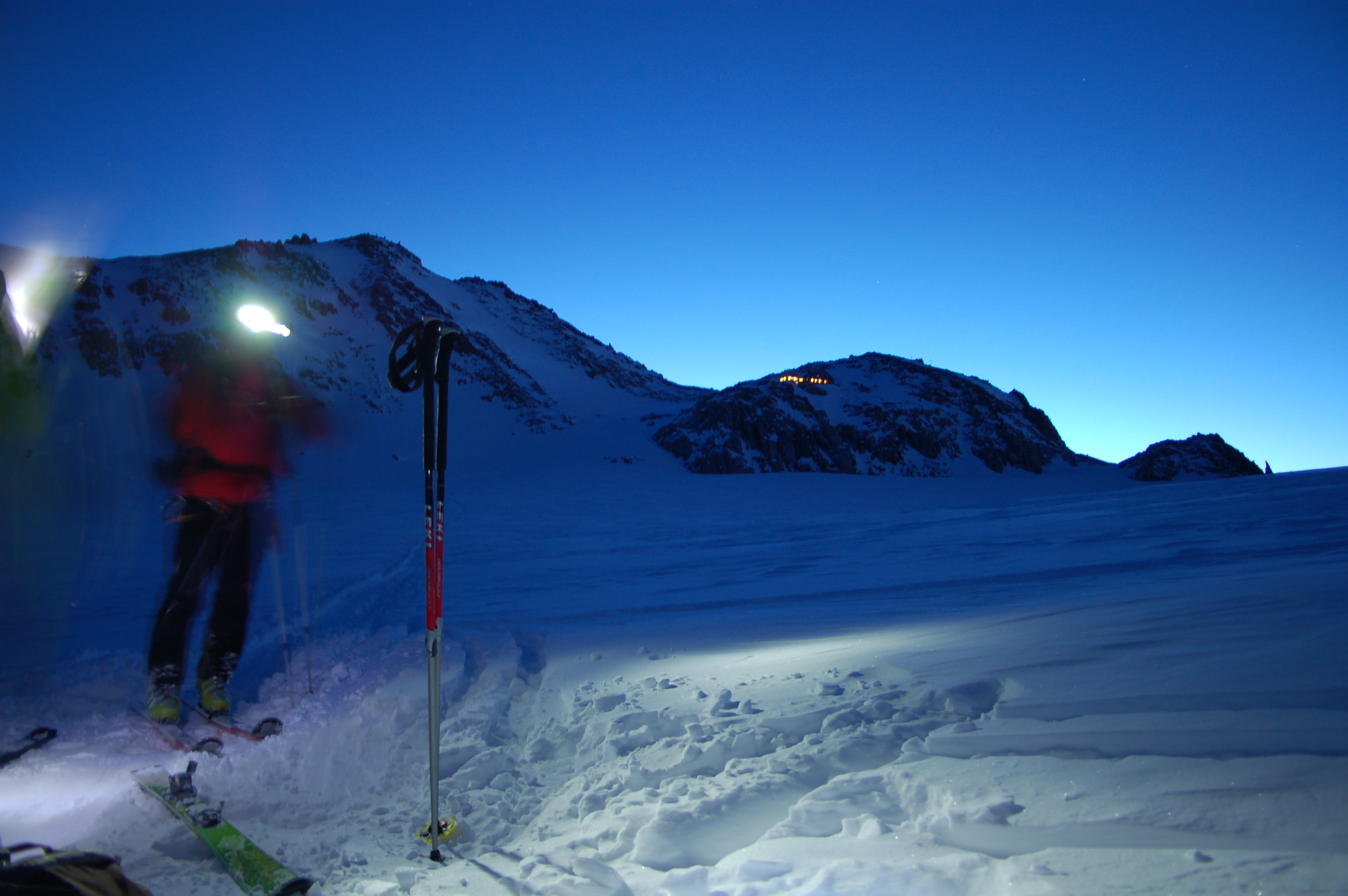 diese internationale skidurchquerung durch vergletschertes, hochalpines gelände zählt zu den imposantesten und gleichfalls geachtetsten touren der westalpen. ausgangspunkt für unsere alternative routenwahl über das italienische aostatal war saas fee (ch). 230km auf tourenskiern lagen vor uns, bevor wir unser ziel in chamonix (fr) erreichen sollten. die tage starteten früh, sehr früh. die nächte verbrachten wir in spartanischen hütten, zumeist gab es auch einfaches essen. waschmöglichkeiten gibt’s in diesen höhen natürlich nicht, fünf euro für einen liter schmelzwasser schmerzen schon beim zähneputzen. die kurze nachtruhe in den lagern war geprägt von nerven zermürbendem geschnarche, furchtbarem gestank, und klirrender kälte (um 0°, gewichtsbedingt keine schlafsäcke). durch das teilweise grenzwertig schlechte wetter mit 50cm neuschnee waren wir einzig und alleine damit beschäftigt irgendwie die nächste hütte zu erreichen. orientierungs- und spurarbeit von früh bis spät, wir hatten ja schließlich keinen guide dabei, und irgendwie war auch sonst keiner unterwegs… tja warum wohl?
