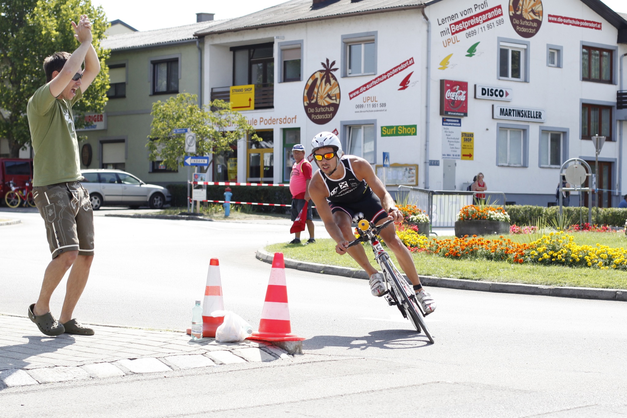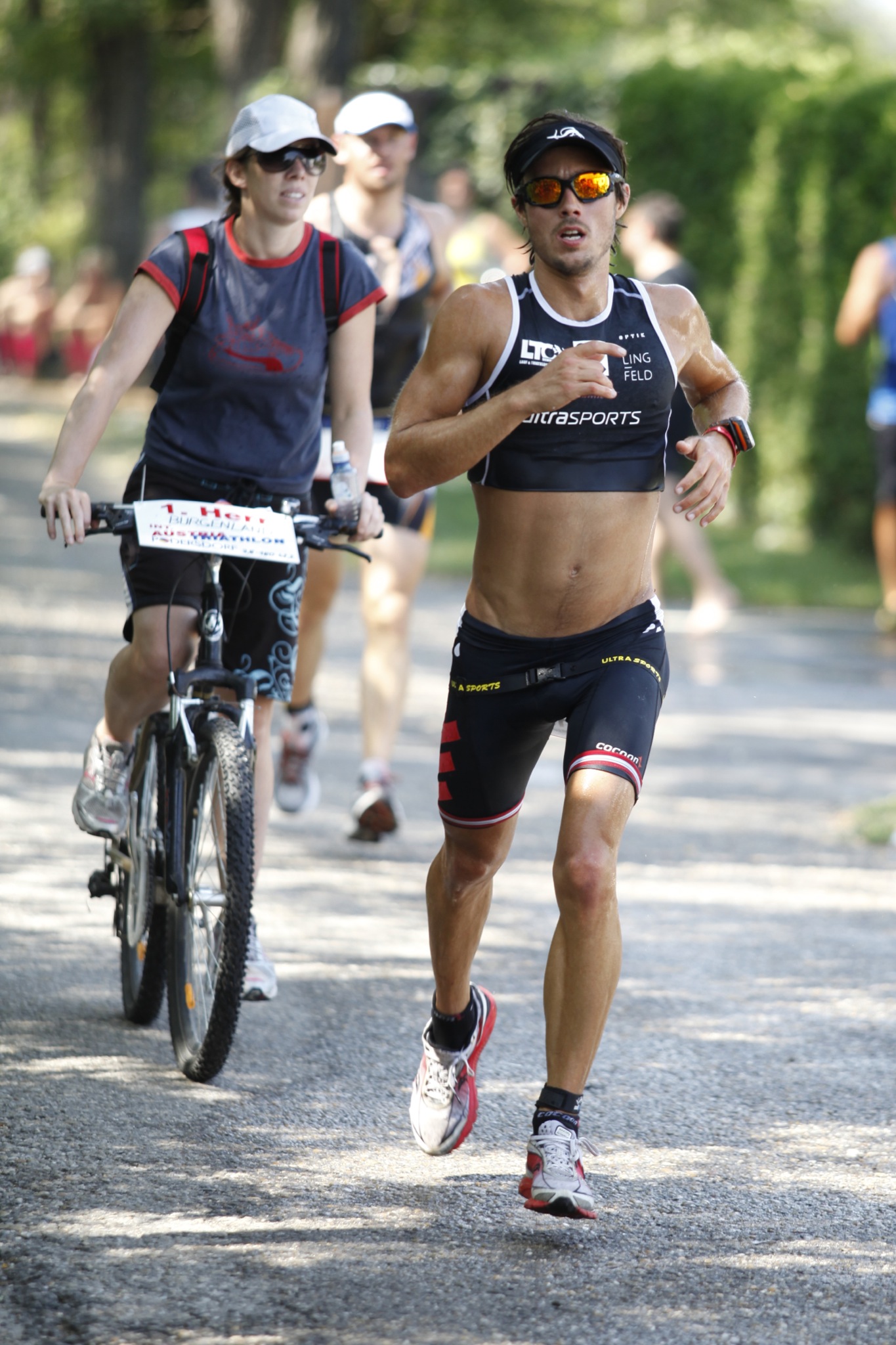 mit 9h30 konnte ich im vorjahr noch sehr gut leben, hatte ich doch mein erstes richtiges trainingsjahr somit sehr erfolgreich bestätigt gehabt. nach dem zweiten jahr mit >1000 netto-trauningsstunden mehr, kann ich mich über 9h30 so ganz und gar nicht mehr freuen. mit 4h38′ für die 180km am rad (7.bester bikesplit, 39km/h schnitt) hatte ich zwar einen deutlichen leistungsschritt gemacht, und die basis für meine zielsetzung gelegt, aber der marathon verlief leider so ganz und garnicht nach meinen vorstellungen. zum einen bereitete mir die atemhilfsmuskulatur schon ab km 3 große schmerzen, regelmäßige aufdehnungsstops waren unausweichlich, zum zweiten war ich die 180km am rad aufgrund einer naiven hetzjagd (bei 110km war ich noch immer auf 4h26′ endzeit, 41er schnitt) zu hart angefahren, die rechnung bekam ich sogleich präsentiert, ein wirklich aktiver lauf somit nicht mehr möglich. im prinzip war ich ab der ersten runde bereits verreckt, … mit den folgenden 35k reinster qual, habe ich mich gehörig selbst bestraft!