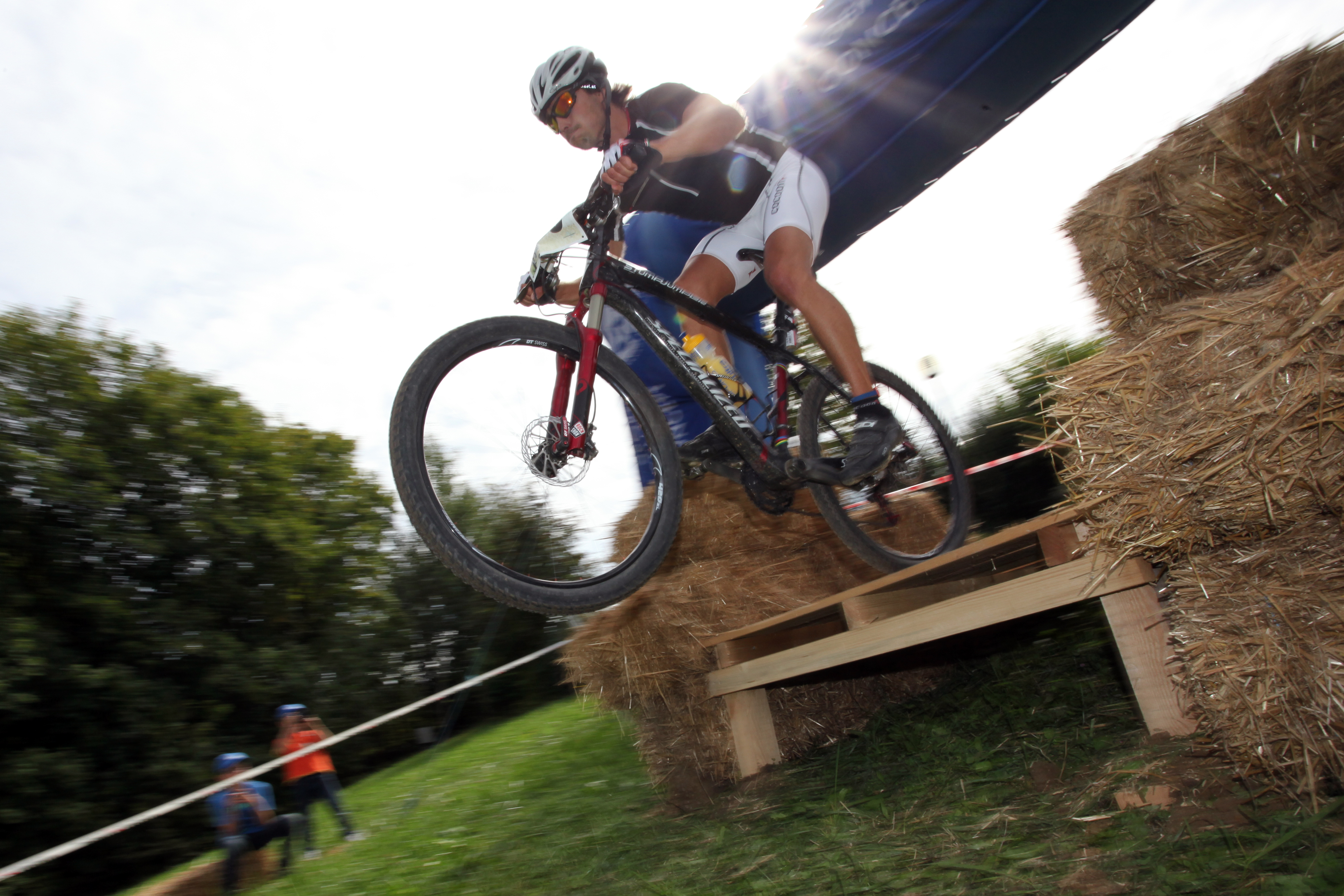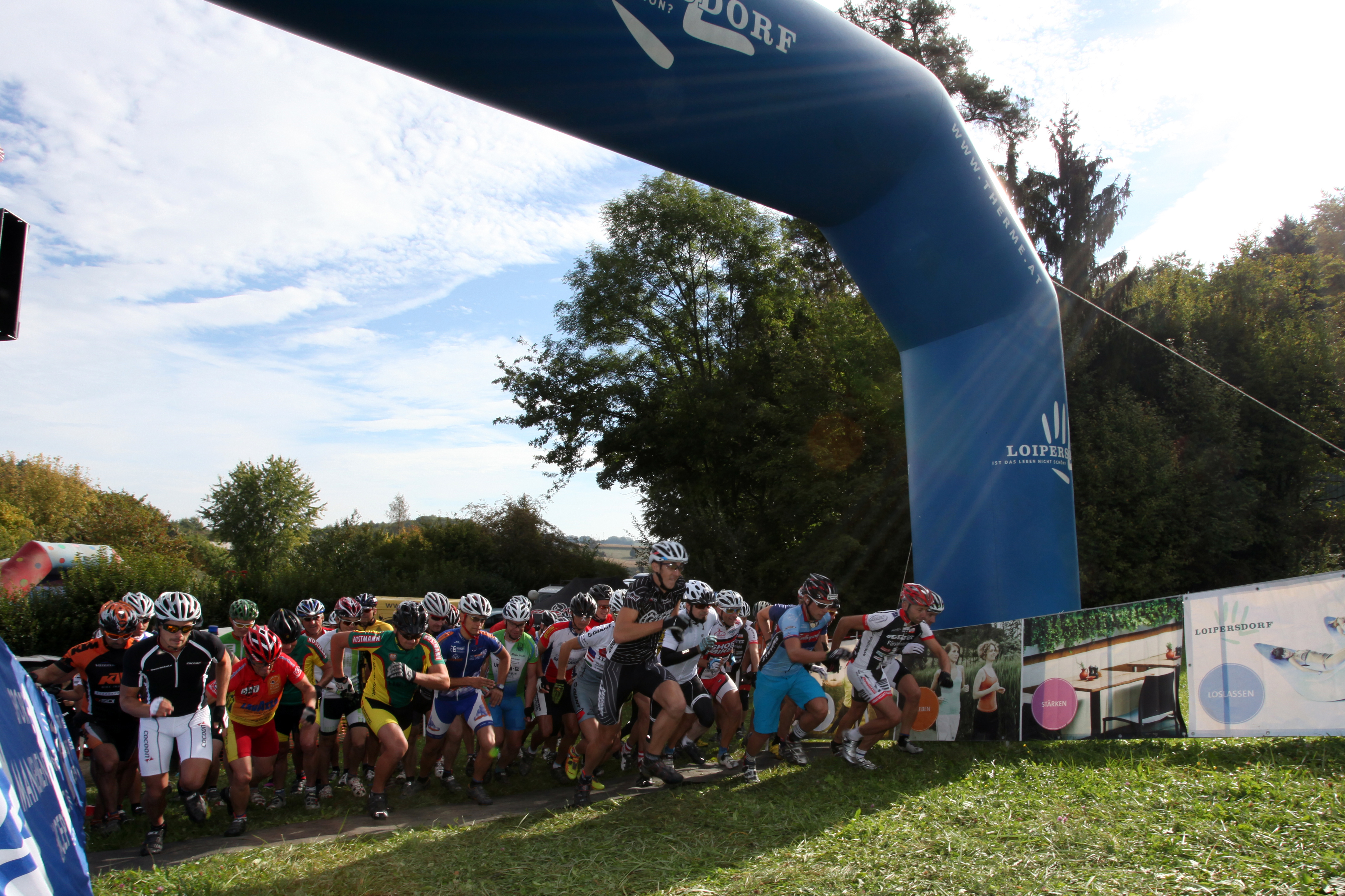 um in der off-season nicht nur in der gegend herum zu tümpeln, nahm ich den kampf um die ´goldene ananas von loipersdorf´ bei der 6h MTB challenge an! knackiger rundkurs mit flotten abfahrten, zumeist auf trails, gespickt mit einem zielsprung und einer bike-park steilkurve, ganz nach dem slopestyle prinzip, publikumswertung inklusive. wie könnte es wohl anders sein, das teilnehmerfeld hirschte los, als gäbe es nur eine runde zu drehen – ich blieb kontrolliert, und arbeitete mich runde für runde bis auf den dritten! rang vor. schön, auch mit den eingefleischten bikern ums podest mitfahren zu können, NUR …. nach 4,5h renndauer gabs einen feinen zzzsch…