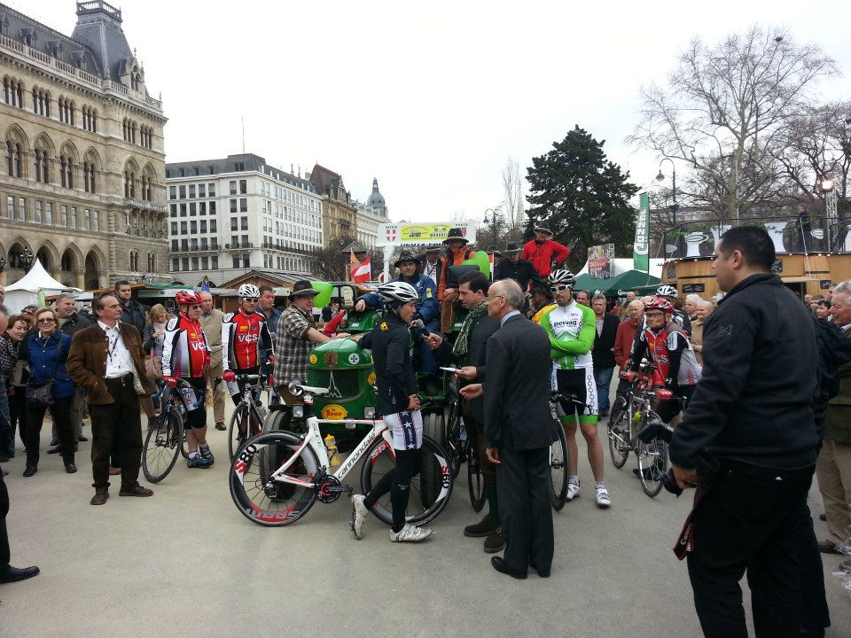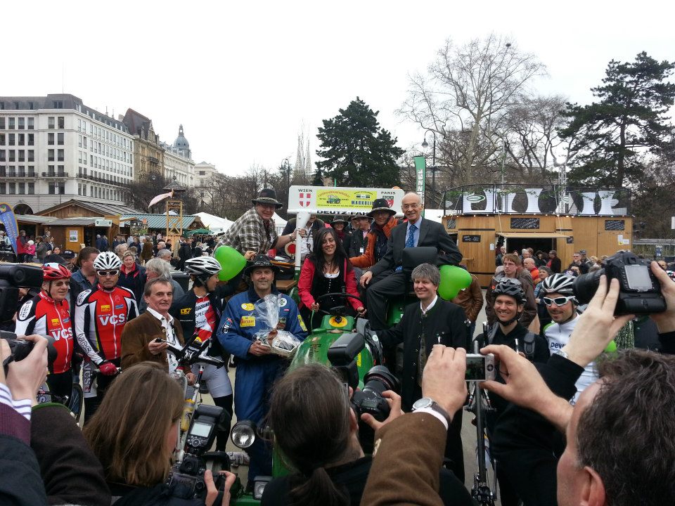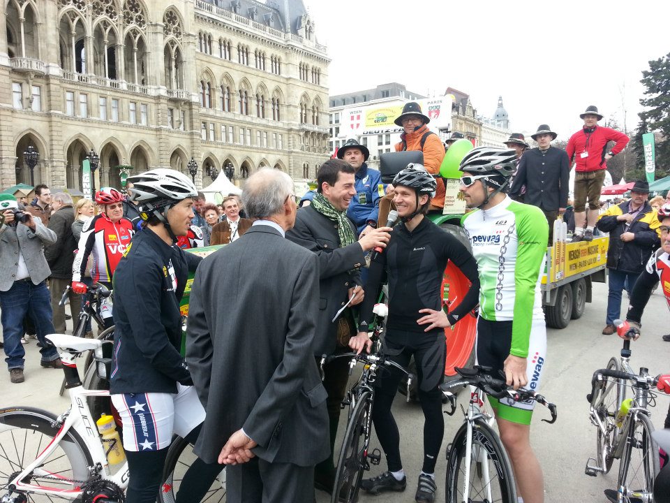 vizebürgermeisterin maria vassilakou und der französische botschafter stéphane gompertz kamen ebenfalls zum start und wünschten uns alles gute und durchhaltevermögen in den vielen nachtstunden…