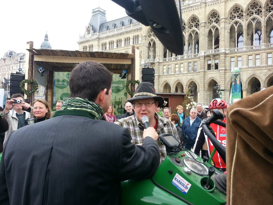 inmitten von hunderten schaulustigen empfang uns ein gewaltiges medieninteresse am wiener rathausplatz. ein filmteam und etwa zehn pressefotographen rangelten um die besten fotos.