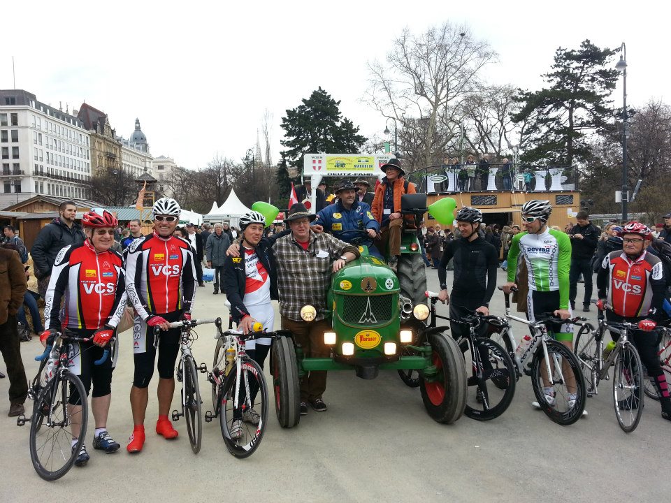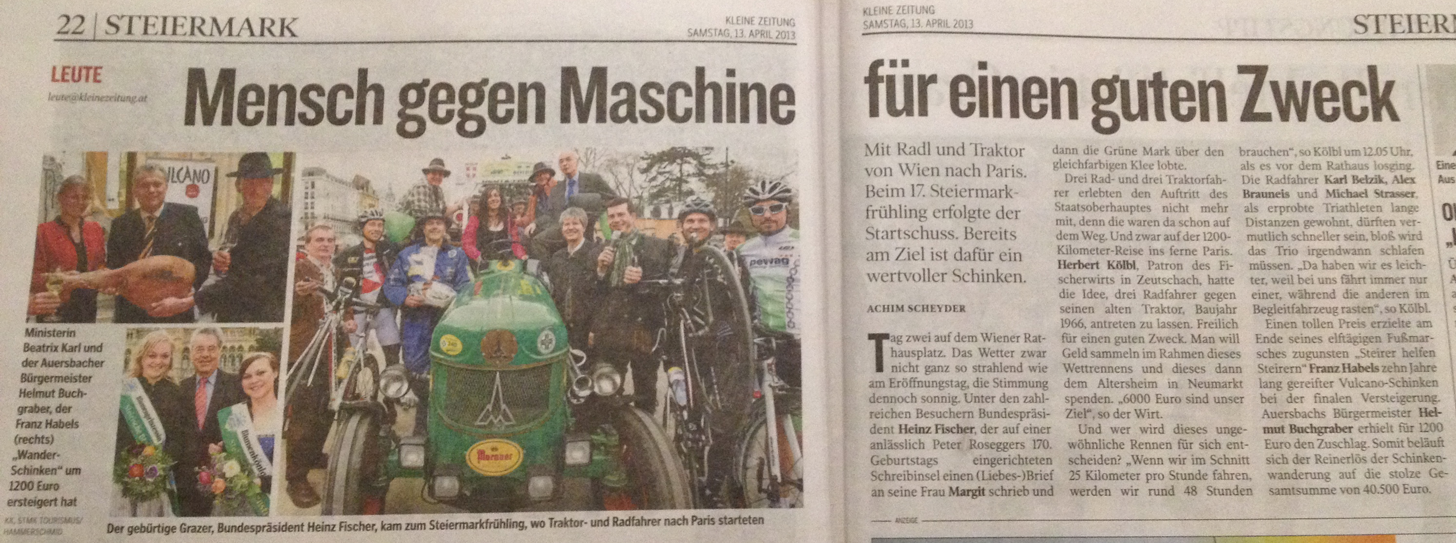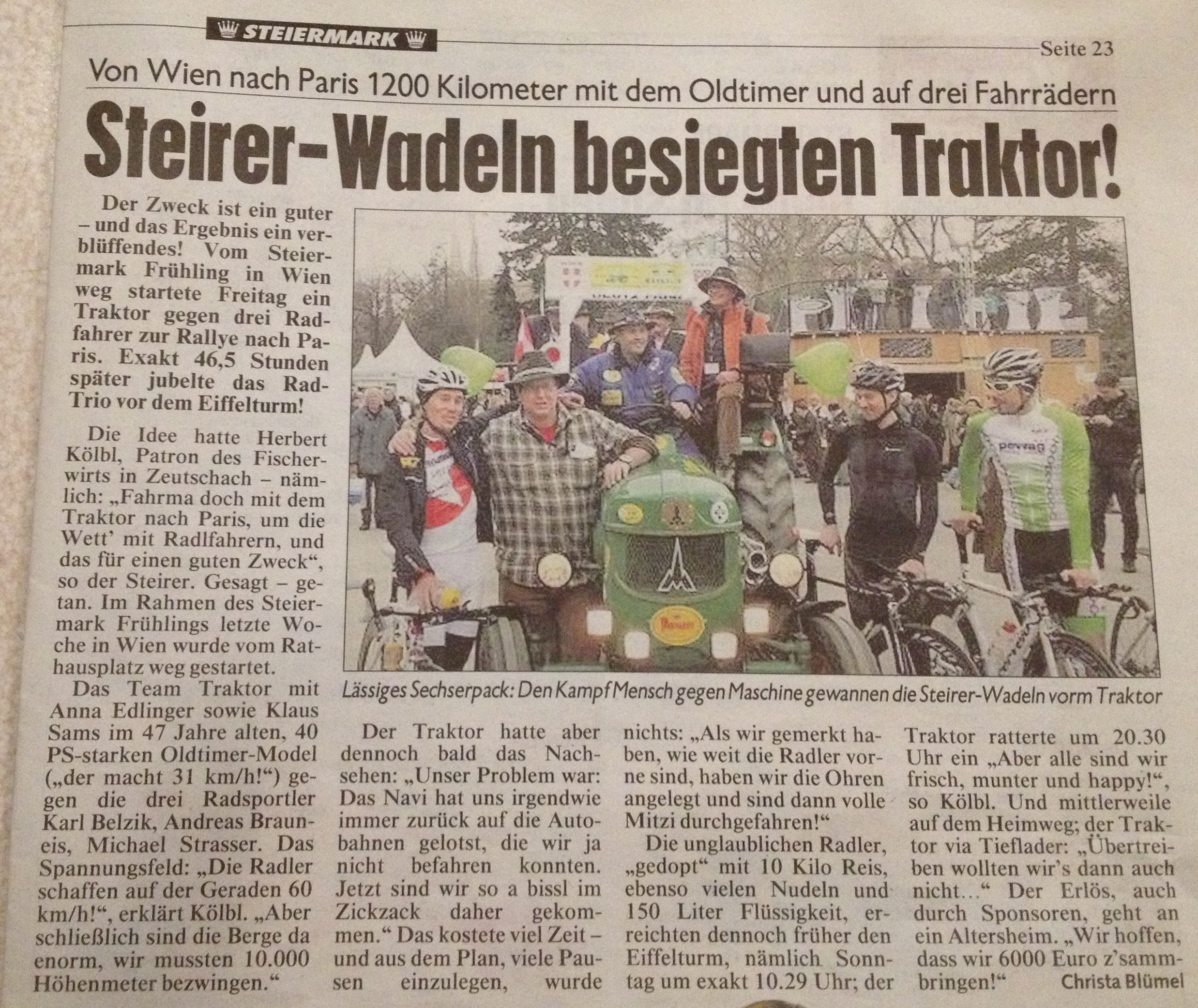 ein taktor mit drei fahrern, drei radfahrer – einer muß immer fahren – wer zuerst paris erreicht, hat gewonnen… klingt doch recht einfach, oder?… und alles für einen guten zweck! … klar, dass sie mich nicht lange überreden mußten, um teil des projektes zu werden.